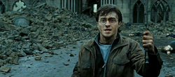 Harry Potter holding the Elder Wand after Disarming Voldemort, in Harry Potter and the Deathly Hallows: Part 2